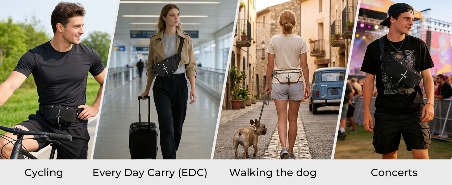1:3-in-1 Hands-Free Carry: Wear it as a waist pack, sling bag, or crossbody. The adjustable strap with quick-release buckle lets you switch styles easily for travel, concerts, or daily errands.