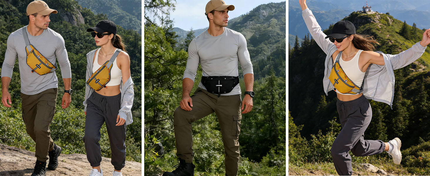 4:Comfortable & Adjustable Fit: Soft fabric and ergonomic design fit snugly without bouncing. Strap adjusts to any body type. Comfortable for running, hiking, or exploring the city.