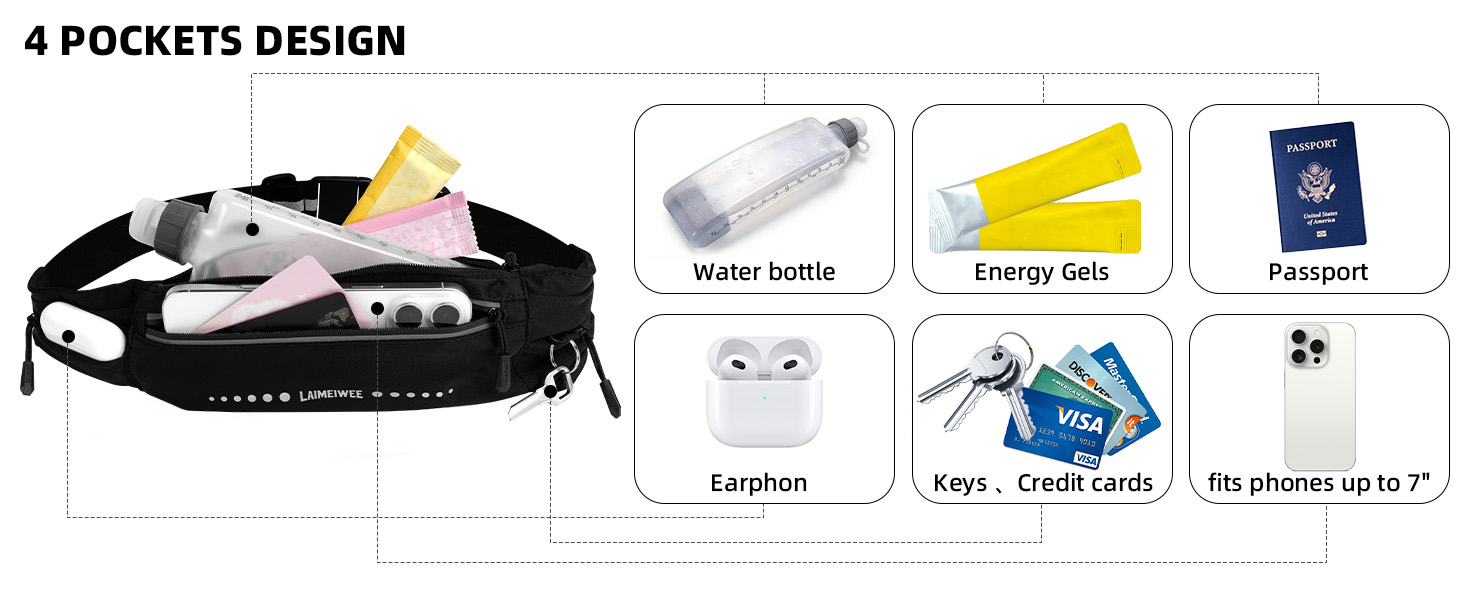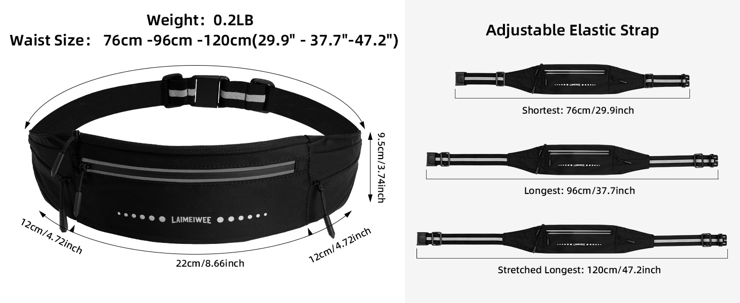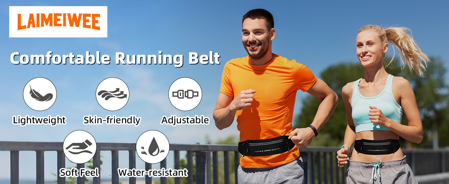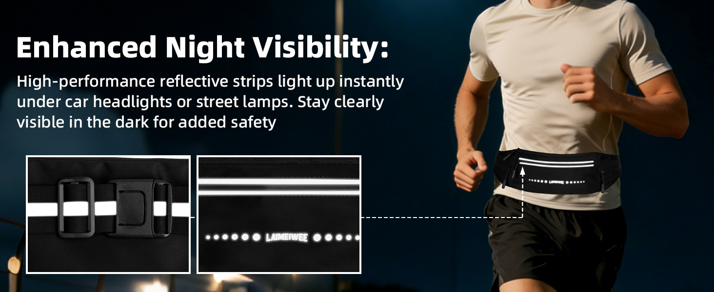 LAIMEIWEE Lightweight Running Belt,Water-Resistant Waist Pack for Women&Men, 4-Zone Organization, Reflective strips Design for Marathon Training, Jogging, Hiking, Commuting