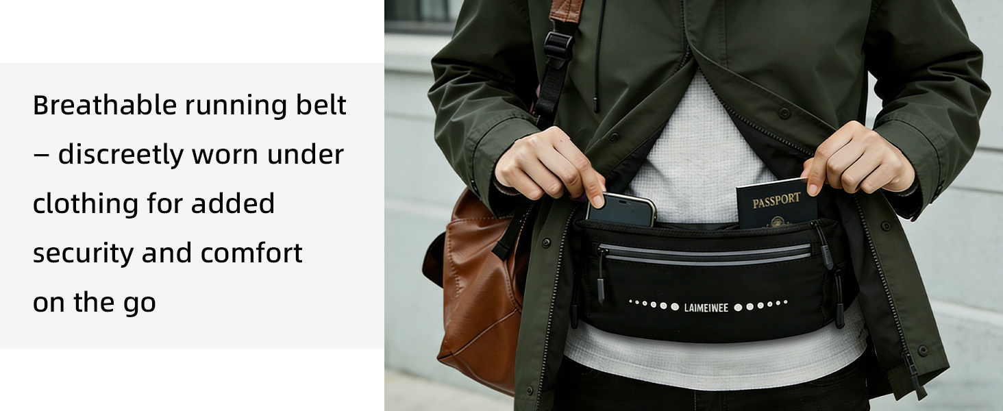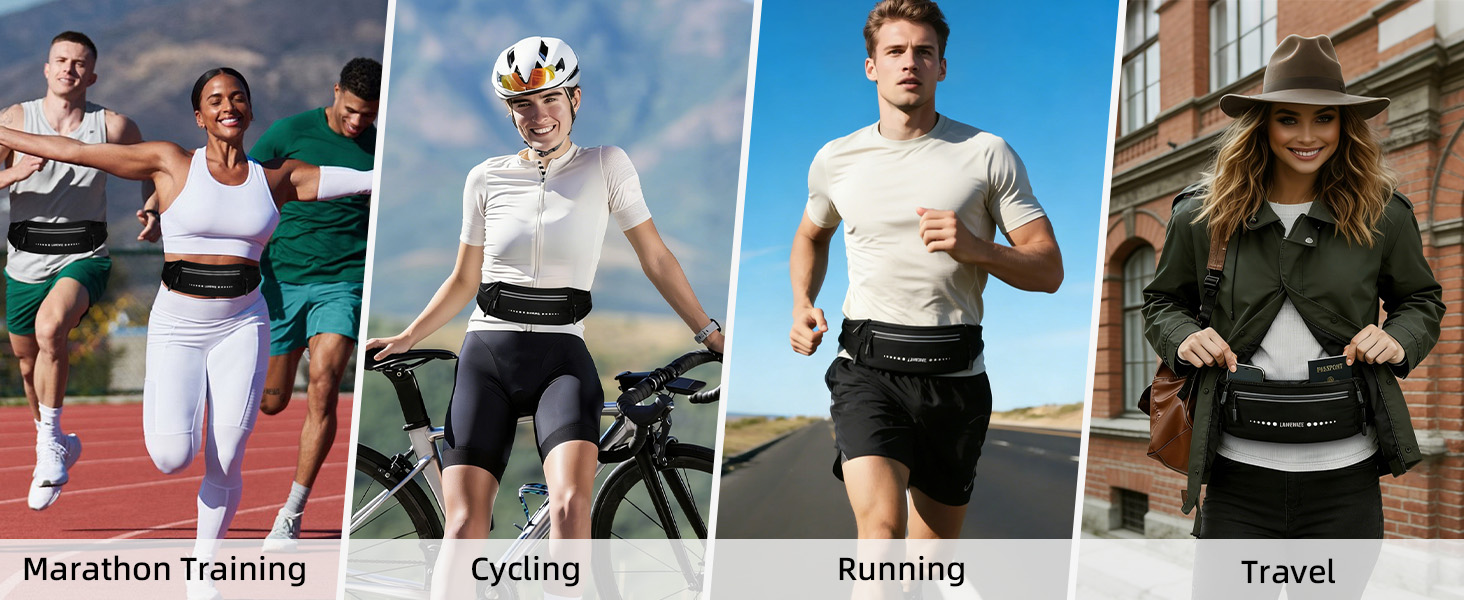 Zero-Bounce Stability & All-Day Comfort: The breathable Lycra-tech fabric wicks moisture and prevents chafing, keeping you cool and dry mile after mile. Featuring an adjustable waist strap (fits 29.9"–47.2" waists), this running belt stays securely in place during marathons, HIIT workouts, and daily runs while minimizing bounce and slipping